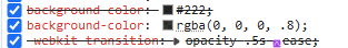 柳が出した答えを、件の部分のhtmlをスクショしたものといっしょにアップして答え合わせしました。正解、という御諚をいただいたのでこれで制御してみたら、まだちゃんと指定が当たらない。上記の方法でクラスに当たっているCSSを調べたところ、取り消し線で消された表示がありました。これは、より上位のCSSによって上書きされているという状況らしい。